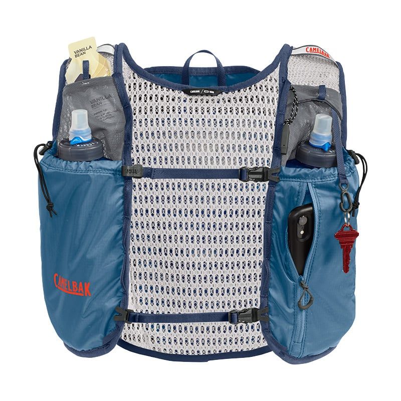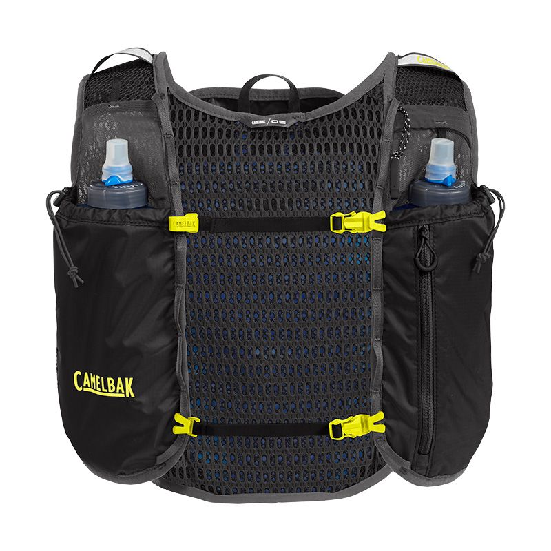 - Ngăn chứa vật dụng thiết yếu và ngăn đựng bình nước mềm được thiết kế chuyên dụng cho chạy bộ. (Không bao gồm bình nước mềm)