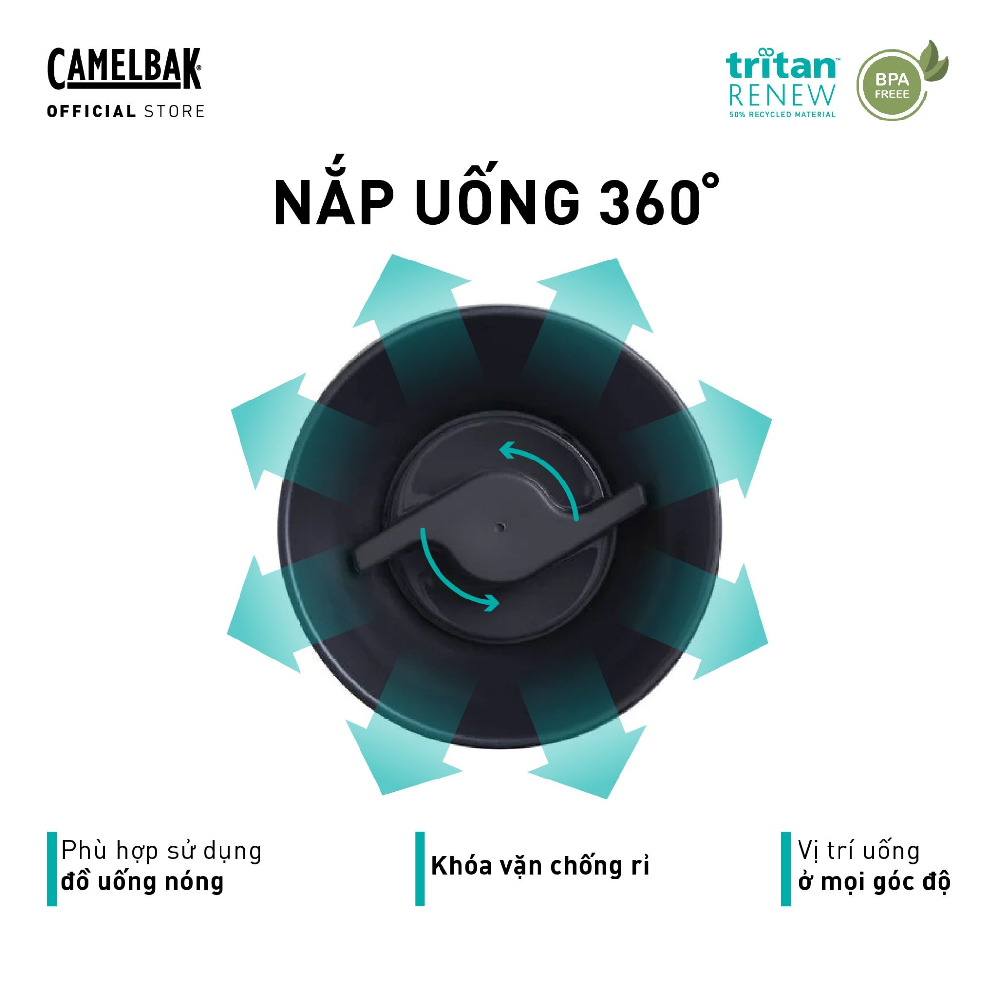 - Nắp 360 độ, có thể uống ở bất kỳ góc nào.